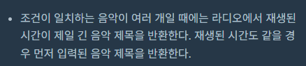 1. 재생시간은 ( 끝나는 시간 - 시작 시간 ) 으로 분 단위로 계산.