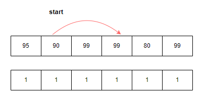 | [95, 90, 99, 99, 80, 99] | [1, 1, 1, 1, 1, 1] | [1, 3, 2] |