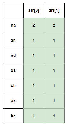hm.get(sub)[1]++; // 두번째 문자열 str2 은 배열의 두번째 인덱스에 ++
